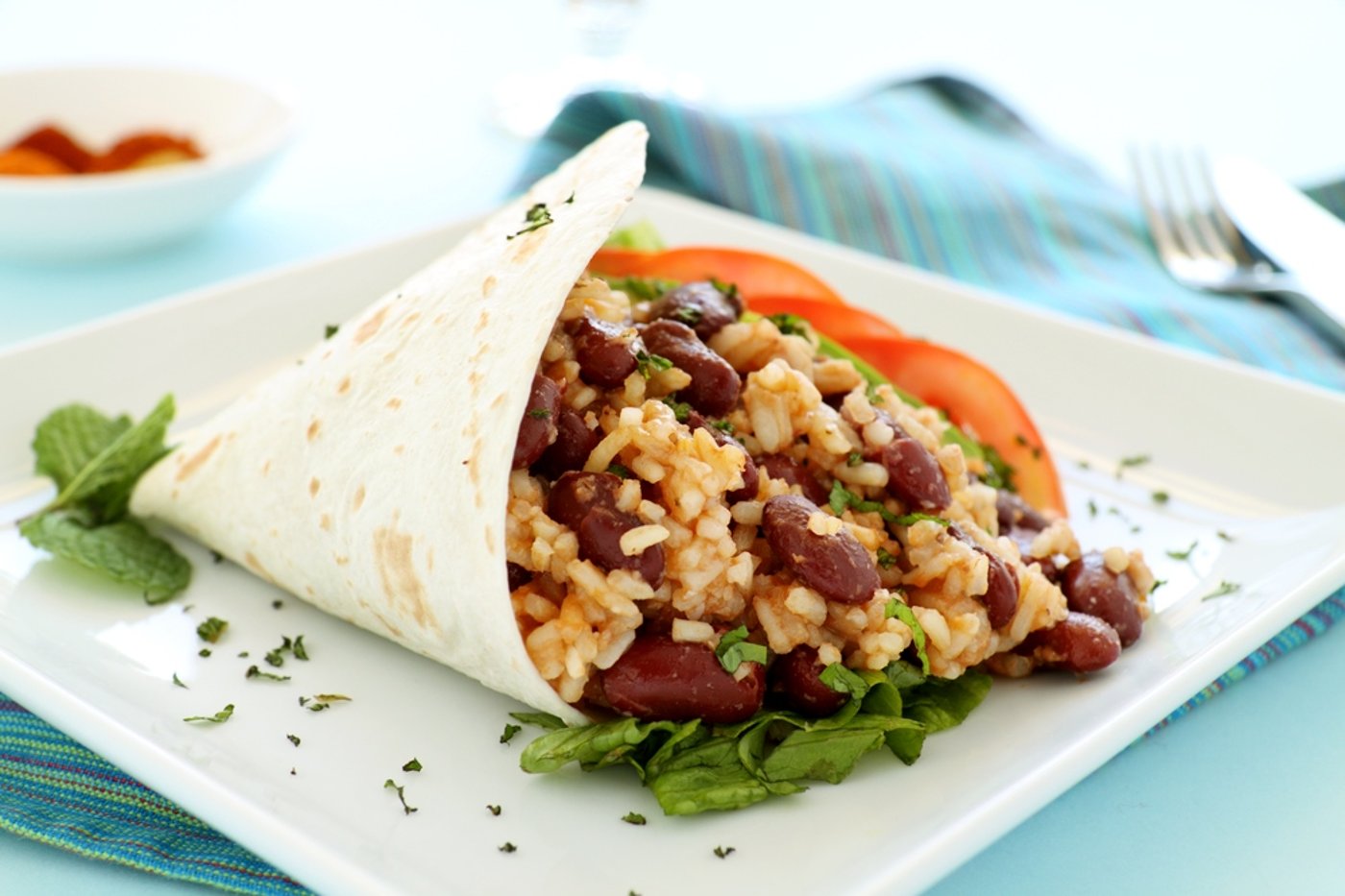 אופן ההגשה: מערבבים יחד את השעועית והאורז ומגישים כמנת צד לעיקרית או ממלאים בטורטייה מקסיקנית, במקום בשר. מגישים עם ירקות טריים וכוסברה קצוצה.