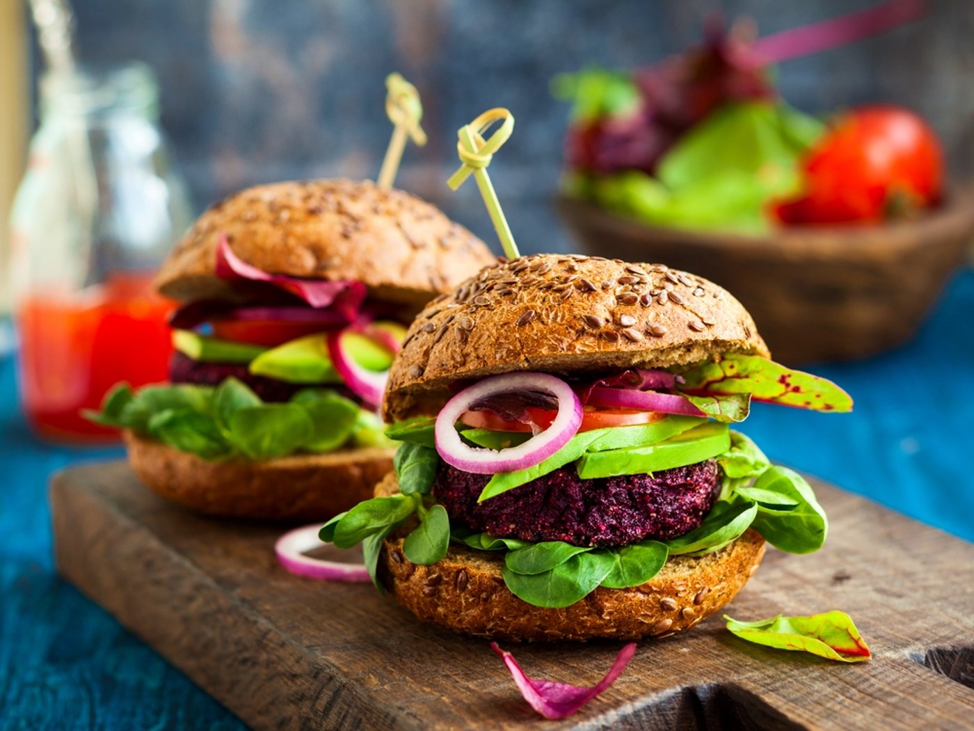 1. המבורגר טבעוני: מכניסים לביבה ללחמניית המבוגר עגולה, מוסיפים ירקות ורטבים אהובים, ומגישים.