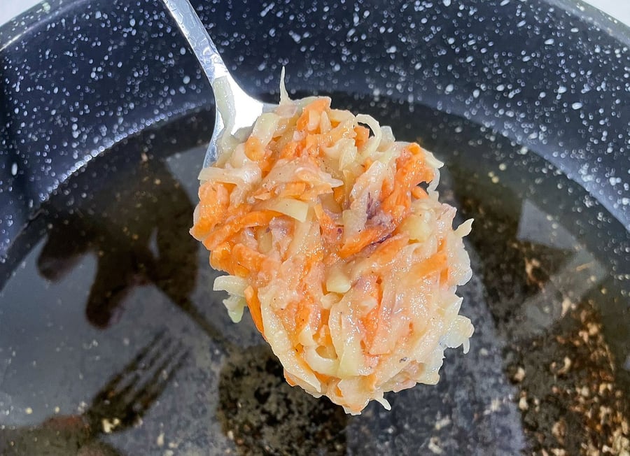 1. מניחים את תפוחי האדמה, הבצל והבטטה המגורדים בקערה מרופדת בשק רשת או בד דק וסוחטים היטב את הנוזלים - ככל שתסחטו יותר נוזלים, הלביבה תהיה קריספית יותר.