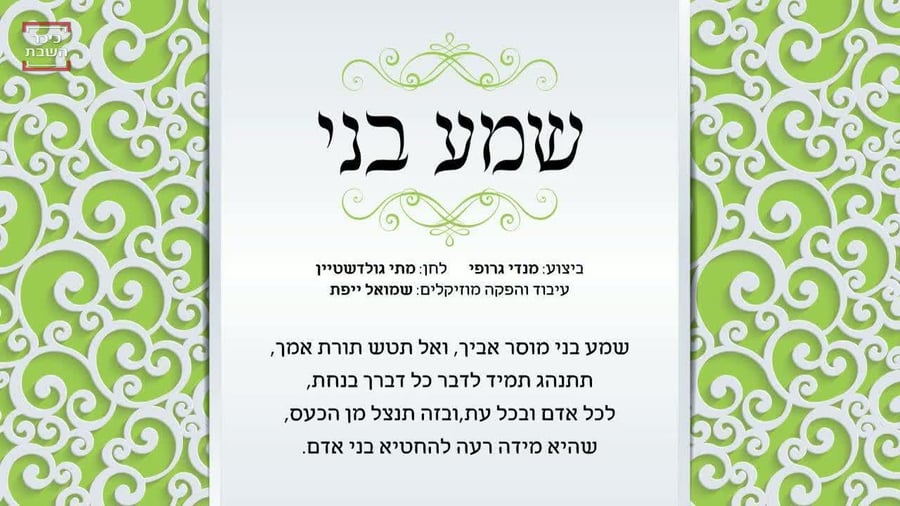 מנדי ג'רופי בסינגל בר מצווה: "שמע בני"הזמר החסידי מנדי ג'רופי בסינגל חדש לכבוד חגיגת בר מצווה בלחנו של האב הגאה מתי גולדשטיין. על העיבוד וההפקה המוזיקלית הופקד המעבד שמואל יפת (סינגלים וקליפים)יטיאיר טוקרכיכר השבת | י"ח באלול | 29.08.189תגובות10100:00/4:32מנדי ג'רופישמואל יפתהאם הכתבה עניינה אותך?כן (100%)לא (0%)תוכן שאסור לפספס:ישי לפידות ובניה גרנות מחדשים את להיט הענק של זושאיאיר טוקר|08.02.26אפי שיינר בסינגל קליפ חדש: "רץ קדימה"יאיר טוקר|08.02.26חיים ישראל במחרוזת נוסטלגיה חדשהיאיר טוקר|07.02.26 0 תגובותאין לשלוח תגובות הכוללות דברי הסתה, לשון הרע ותוכן החורג מגבול הטעם הטוב.שליחת תגובה6מנדי ג'רופי- הגדול מכולם.אימוגים לתגובהאבא של יהונתן30.08.18 דיווחתגובה5שיר ועיבוד מצוייניםאימוגים לתגובהאיציק29.08.18 דיווחתגובה4מהודק טוב ולחן טובאימוגים לתגובהקלוגר29.08.18 דיווחתגובההצגת כל התגובותאולי גם יעניין אותך:שמילי אונגר בסינגל קליפ חדש: "כוס של ברכה"יאיר טוקר|06.02.26אבי אילסון ואהרל'ה סמט בדואט מרקיד: ״המלמד תורה״יאיר טוקר|04.02.26אביעד ואביה שרמן בסינגל קליפ חדש ומשעשע: "משיח"יאיר טוקר|04.02.26