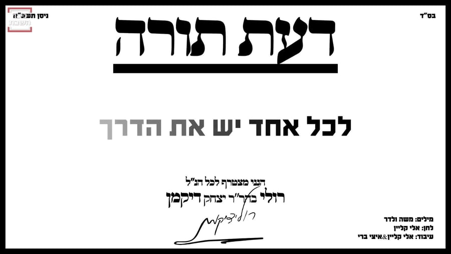רולי דיקמן בסינגל חדש: "דעת תורה"אחרי שהפך לשיחת השבוע, חושף רולי דיקמן את הלהיט שמאחורי מודעות הענק ברחובות בני ברק וירושלים. המילים של משה ולדר, הלחן הקצבי של אלי קליין, שגם אחראי לעיבוד המוזיקלי יחד עם איצי ברי (סינגלים)יטיאיר טוקרכיכר השבת | כ"ט באדר | 13.03.2187תגובות10100:00/3:06אלי קליין ואיצי בריאלי קלייןרולי דיקמןמשה ולדרהאם הכתבה עניינה אותך?כן (9%)לא (91%)תוכן שאסור לפספס:מאות קולות, מחרוזת אחת: דניאל אלישע “שבת Live”יאיר טוקר|11.03.26משה קליין ודוד חפצדי בדואט חדש ומרגש: "ואיך הימים"יאיר טוקר|11.03.26אלחנן ענבל בסינגל קצבי חדש: "מלאך"יאיר טוקר|11.03.26 0 תגובותאין לשלוח תגובות הכוללות דברי הסתה, לשון הרע ותוכן החורג מגבול הטעם הטוב.שליחת תגובה57דעייייי איזה כיףףף הייתי תגובה ראשונה של השיר הזה בטיובבבבב!!!!!!!!!!! אימוגים לתגובהשירההה26.03.21 דיווחתגובהאהה. זאת את??!! המשפחה שלך מרא?!אימוגים לתגובהרונוששש26.03.21 דיווחתגובהחחחחח לאא היא הייתה אחריי ואני מחקתי את התגובהאימוגים לתגובהשירהההההההה09.10.21 דיווח56ואוו מושלםאימוגים לתגובהבן אדם14.03.21 דיווחתגובה55אחד השירים!אימוגים לתגובהנתן14.03.21 דיווחתגובה54אמיתי פשוט מושלםםםםםםםםםםםםםםם האבתי ברמות הזויותאימוגים לתגובהאנונימי14.03.21 דיווחתגובה53וואוו אלוףףףףף!!! אחלההה שירר!! אין על רולי התותחחח!!! תמיד משקיע בשירים, אין אצלו שירים בינוניים... הוא לא מעגל פינות, כל שיר להיטטטט!!! אימוגים לתגובהYael14.03.21 דיווחתגובה52יואוו שיר יפההאימוגים לתגובהחיה14.03.21 דיווחתגובה51מהמםםםםםםםםםםםםםםםםאימוגים לתגובהאורית14.03.21 דיווחתגובה50זו בדיוק פרסומת לג'. אבל אנחנו-כבר בן גביר, שבענו ממכם. הוא ילחם באצת על מדינת הלכה.אימוגים לתגובהאילה14.03.21 דיווחתגובהרק גגגגגגגגגגגגגגגגגגגגגגגגאימוגים לתגובהבני14.03.21 דיווחתגובהנכון, רק הסמוטריץ' ובן גב'יר.אימוגים לתגובהמשמש14.03.21 דיווחתגובה49שיר פשוט מושלם.....אימוגים לתגובהמהמםםםםםםםם14.03.21 דיווחתגובה48נו נו-יותר טוב מהג'ינגל הנדושאימוגים לתגובהיאיר13.03.21 דיווחתגובההצגת כל התגובות (57)אולי גם יעניין אותך:שמוליק סוכות בבנייני האומה בלייב: "גיבור עולם"יאיר טוקר|10.03.26איציק דדיה בסינגל קליפ מרהיב: "יצר טוב"יאיר טוקר|10.03.26יידל ורדיגר ויצחק בן ארזה בקליפ חדש ללהיט: "ממעמקים"יאיר טוקר|08.03.26