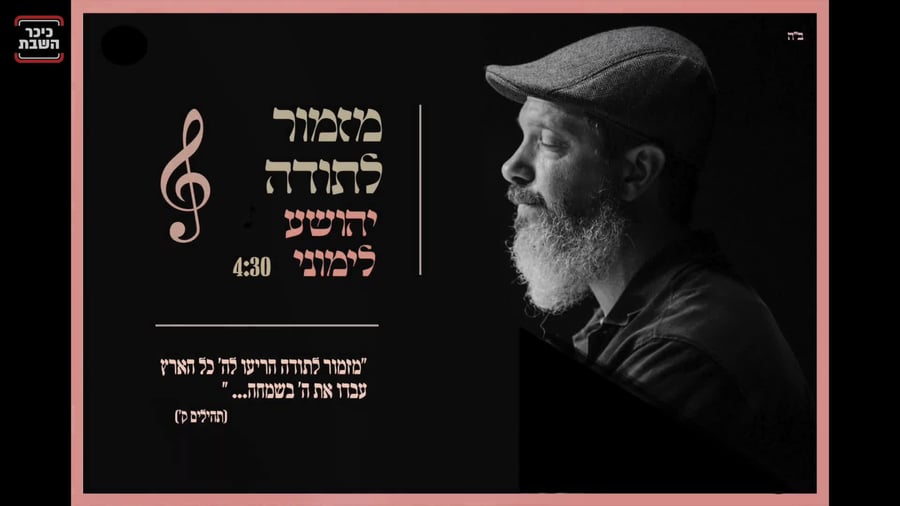 יהושע לימוני בסינגל חדש ומרגש: מזמור לתודההזמר והיוצר יהושע לימוני בסינגל חדש - "מזמור לתודה", לראשונה לחן שלו למילים מהתהילים. לימוני אחראי גם על הנגינה וההפקה המוזיקלית (סינגלים וקליפים)יטיאיר טוקרכיכר השבת | ז' בשבט | 29.01.231תגובות10100:00/4:26יהושע לימוניהאם הכתבה עניינה אותך?כן (100%)לא (0%)תוכן שאסור לפספס:ישי לפידות ובניה גרנות מחדשים את להיט הענק של זושאיאיר טוקר|08.02.26אפי שיינר בסינגל קליפ חדש: "רץ קדימה"יאיר טוקר|08.02.26חיים ישראל במחרוזת נוסטלגיה חדשהיאיר טוקר|07.02.26 0 תגובותאין לשלוח תגובות הכוללות דברי הסתה, לשון הרע ותוכן החורג מגבול הטעם הטוב.שליחת תגובה1אוהב מאוד את הסגנון שלך . ממש מחכה לשירים נוספים שלך.אימוגים לתגובהמזמור לתודה על השיר מזמור לתודה30.01.23 דיווחתגובהאולי גם יעניין אותך:שמילי אונגר בסינגל קליפ חדש: "כוס של ברכה"יאיר טוקר|06.02.26אבי אילסון ואהרל'ה סמט בדואט מרקיד: ״המלמד תורה״יאיר טוקר|04.02.26אביעד ואביה שרמן בסינגל קליפ חדש ומשעשע: "משיח"יאיר טוקר|04.02.26