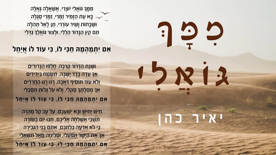 יאיר כהן בלחן חדש לפיוט העתיק: "ממך גואלי"הזמר יאיר כהן בלחן חדש לפיוט "ממך גואלי", שמחברו לא ידוע. הפיוט מובא בקובץ הפיוטים של מרן אביר יעקב אביחצירא לחן: יהודה אריה מלכא, עיבוד והפקה מוסיקלית: שניאור מוניס (סינגלים וקליפים)יטיאיר טוקרכיכר השבת | י"ח בטבת | 30.12.23'שמואל' בסינגל חדש וייחודי: "אני מבורך"יאיר טוקר|11:26אחרי 30 שנות שתיקה: "הניגון האבוד" של משפחת וולפסון יוצא לאוריאיר טוקר|18.03.2610100:00/3:35יאיר כהןשניאור מוניסיהודה אריה מלכאהאם הכתבה עניינה אותך?כן (100%)לא (0%)תוכן שאסור לפספס:יוסי פריד בסינגל קליפ חדש: "איך קען"יאיר טוקר|18.03.26תזמורת פריילאך מארחת את מרדכי שפירא ו'היום השמיני' לביצוע מלהיביאיר טוקר|18.03.26משה טישלר בקליפ חדש מהאלבום: "יגעתי"יאיר טוקר|18.03.26 0 תגובותאין לשלוח תגובות הכוללות דברי הסתה, לשון הרע ותוכן החורג מגבול הטעם הטוב.שליחת תגובהאולי גם יעניין אותך:מקהלת הילדים של 'תודה לך השם' בסינגל קליפ חדש: "צבא השם"יאיר טוקר|17.03.26ברק גרוסברג ולהקתו מחדשים את הלהיט הגדול של זושאיאיר טוקר|16.03.26שמוליק סוכות בסינגל קליפ חדש: "אבא טוב"יאיר טוקר|15.03.26