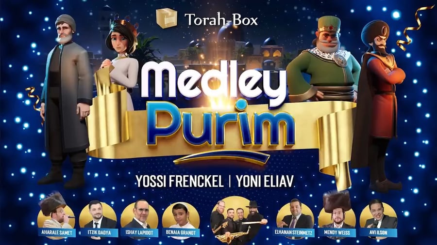 יוני אליאב במחרוזת פורימית סוחפת ומקפיצה בשילוב מנצח ומפתיע של מיטב השמות במוזיקה החסידית: אהרל'ה סמט, איציק דדיה, אבי אילסון, מנדי וייס, אלחנן שטיינמץ, ישי לפידות וילד הפלא בניה גרנות (סינגלים וקליפים)
