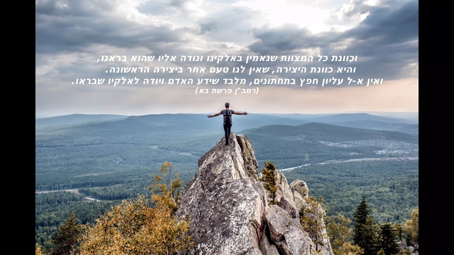 "אין קל עליון חפץ בתחתונים, מלבד שידע האדם ויודה לאלקיו שבראו."