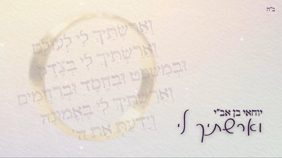 אחרי סינגלים שהדהדו את רוח התקופה והתכתבו עם ימי המלחמה ("על הניסים", "בדרך אמונה בחרתי"), המוזיקאי והיוצר יוחאי בן אב"י, חוזר אל המרחב האישי והמשפחתי ומשחרר סינגל חדש: "וארשתיך לי".