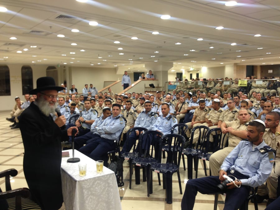 קודם הסליחות התכנסו הקצינים והחיילים בהיכל הצמוד לשיעור מיוחד מפי גדול מחזירי התשובה וראש המוסדות הגאון רבי ראובן אלבז.