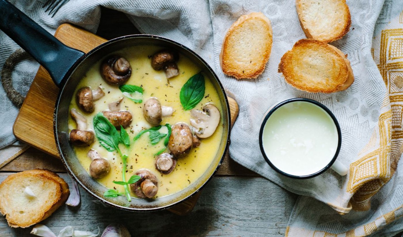 5. מוסיפים את גבינת הגאודה ואז מעבירים את המחבת לתנור. אופים עד להמסה של הגבינה (יתכן שיהיה צורך לערבב אותה פעם אחת כדי להגיע להמסה אחידה), במשך 6-8 דקות. מגישים מיד עם לחם בצד לטבילה.