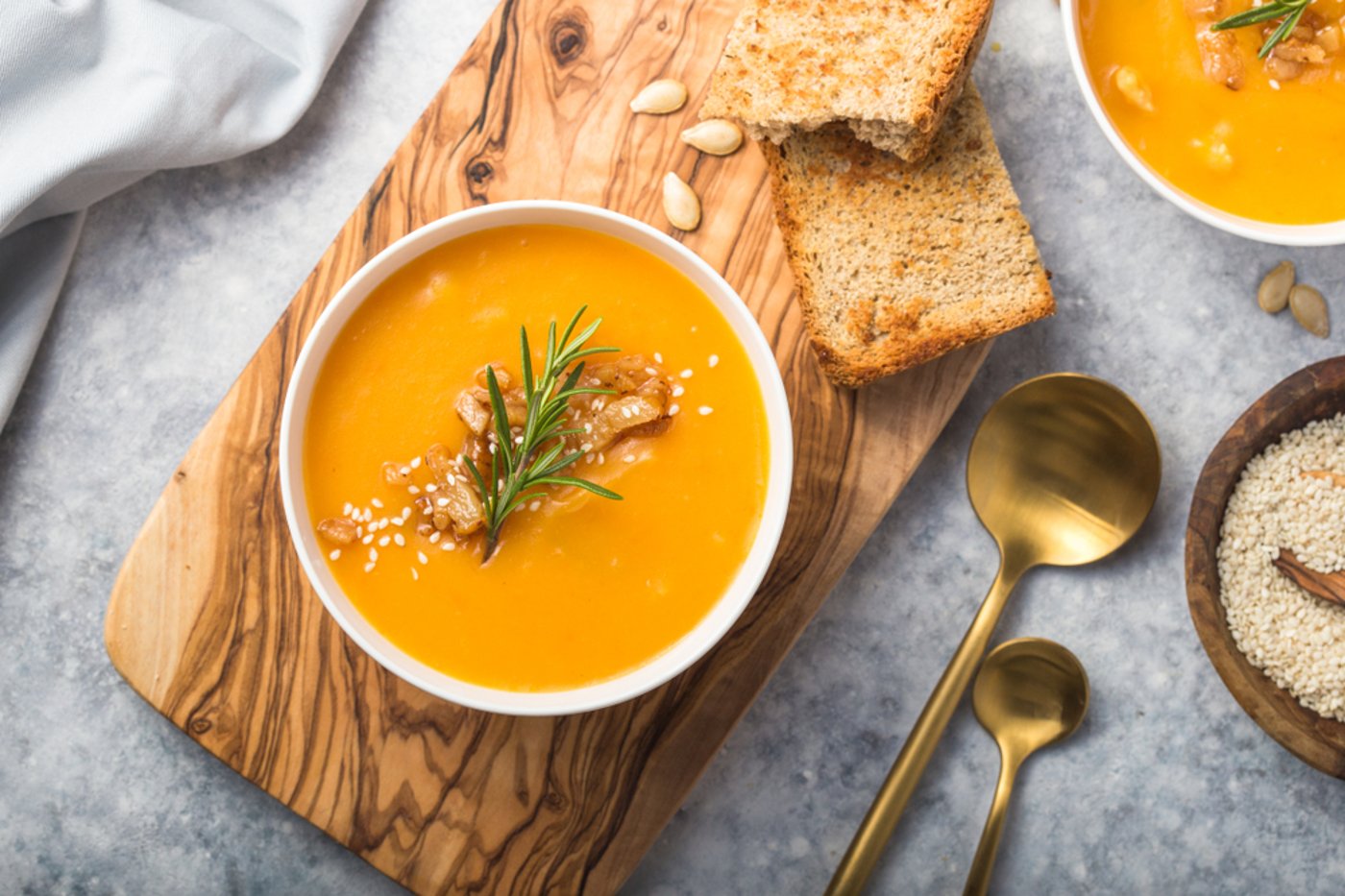 3. טועמים ומוסיפים עוד מלח, אם צריך. מכבים את האש וטוחנים את המרק במוט בלנדר או במעבד מזון עד למרקם הרצוי. מגישים חם.
