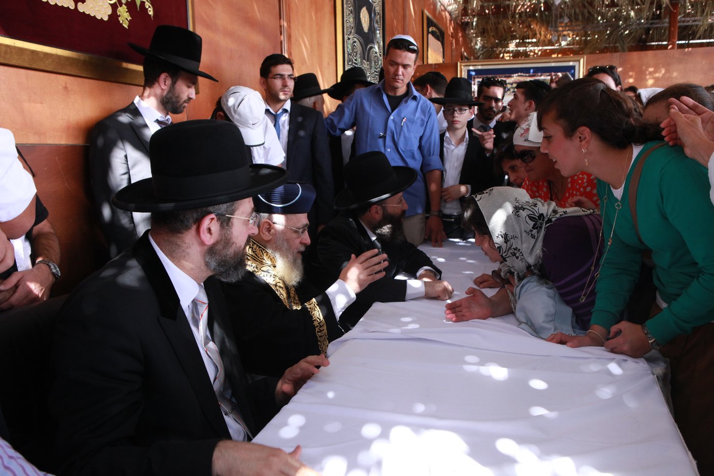 עם סיום המעמד קיבלו הרבנים הראשיים לישראל , הראשון לציון הגאון רבי יצחק יוסף שליט"א והגאון רבי דוד לאו שליט"א יחד עם רב הכותל המערבי והמקומות הקדושים הגאון רבי שמואל רבינוביץ שליט"א את פני העולים לרגל בסוכה שברחבת הכותל המערבי.