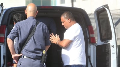 בנמל אשדוד הוא נחשב לאיש הכל יכול, אבל אתמול, יו"ר ועד עובדי הנמל, אלון חסן, תועד כשהוא מובל לחקירה במשרדי להב 433 כשהוא אזוק בידיו וברגליו • מאגירא רמא (משטרה)