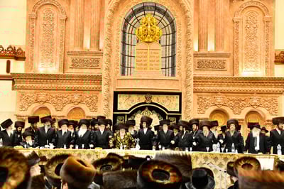 אלפי חסידים חגגו אמש (שני) שמחת בית צדיקים, שמחת נישואי נכדת הגה"צ רבי מנחם ארנסטר ראש ישיבות ויז'ניץ, בת לבנו הרה"ג ר' יעקב שמשון ארנסטר, עב"ג החתן בן האדמו"ר מזידטשוב שיקאגו, חתן האדמו"ר מבאיאן | השמחה הגדולה נערכה בהיכל בית המדרש הגדול בקרית ויז'ניץ בבני ברק (חסידים)