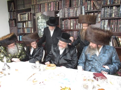 שמחת השבע ברכות המרכזי לרגל נשואי בן האדמו"ר מלייפניק, עב"ג הכלה בת האדמו"ר מדעעש, התקיימה באופן מצומצם לבני המשפחה בלבד, ללא השתתפות החסידים, לנוכח מצב המלחמה בארץ | בשמחה השתתפו אדמורי"ם ורבנים שבאו לאחל ברכת מזל טוב לכבוד השמחה בחצרות החסידים (חסידים)