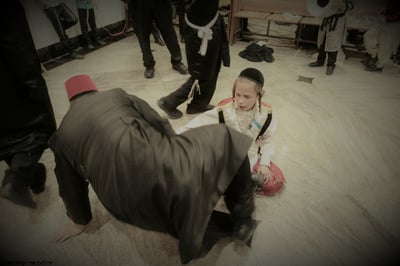 אדמו"רים, רבנים וקהל חסידים השתתפו בשמחת החתונה לבת האדמו"ר מהארנסטייפל, עם החתן הבחור החשוב שלום נח שפיגל, בן הרה"צ ר' יואל דוד שפיגל, ראש ישיבת 'נצח ישראל' | לאחר הסעודה והריקודים התקיים מעמד ה'מצווה טאנץ' (חסידים)