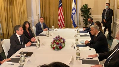 שר החוץ נועד עם מזכיר המדינה האמריקני ועם שר החוץ האמירתי, בפגישה המציינת שנה להסכמי אברהם, ואמר: "כל גרירה נוספת של המו"מ מקרבת את איראן לפצצה" (מדיני)