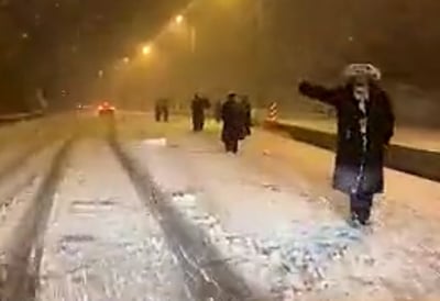 מספר תושבי העיר ביתר נתקעו בשל השלג בכביש המנהרות ומחוסר ברירה וההיעדר תחבורה ציבורית, הם החלו לצעוד רגלית - כשהם מתבוססים בשלג לכיוון העיר ביתר • רה"ע הזהיר מנסיעה דרך חוסאן • צפו (חרדי)