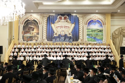 המוני חסידים ואנשי מעשה נטלו חלק בשמחת בית צדיקים, שמחת נישואי בת האדמו"ר מסקולען מאנסי, עב"ג החתן בן הגה"צ אב"ד בית ישראל', בן הגה"צ אב"ד אולם, וחתן אב"ד פאפא ירושלים | שמחת החתונה התקיימה ברוב פאר והדר בהשתתפות האחים האדמו"רים מסקולען, באולם 'בית אסתר' מאנסי | צפו בתיעוד (חסידים)
