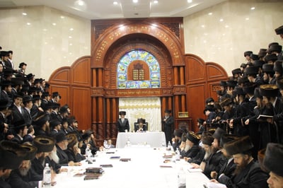 מאות חסידי אלכסנדר שהו לימי ראש השנה והשבת שלאחריה בצל רבם האדמו"ר מאלכסנדר | לצורך קליטת מאות האורחים, הושכר במיוחד ה'אונדיטוריום העירוני' ברחוב ירושלים בבני ברק, שם ערך האדמו"ר את התפילות והטישים לקהל חסידיו (חסידים)