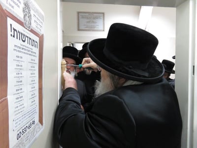 תחת הכותרת "קהילה לכל", נערך מעמד קביעת מזוזות ופתיחת לשכת ההוראה המורחבת והמחודשת של 'קהל מחזיקי הדת', בראשות כ"ק האדמו"ר מבעלזא • צפו בגלריה (חדשות, חסידים)
