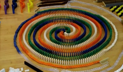 22 בני אדם עבדו במשך שבועיים, כדי לשבור שיא גינס עצמי להפלת מספר אבני הדומינו הגדול ביותר • כחצי מיליון אבנים זעירות הופלו לאחר שזבוב נחת על אחת מהן (מעניין)