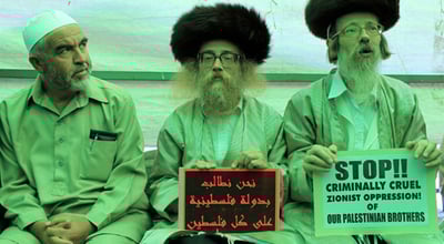 על רקע המהומות של הפלסטינים ברחבי ירושלים, נפגשו נטורי קרתא עם יו"ר הפלג הצפוני בתנועה האיסלמית, השייח ראאד סלאח במזרח העיר. הנטורי קרתא החזיקו בשלטים: "ציונים אינם יהודים", ו-"מירדן עד הים, פלסטין תהיה חופשית". עשרות כלי-תקשורת תיעדו את הביזיונות. צפו בתמונות (בארץ)