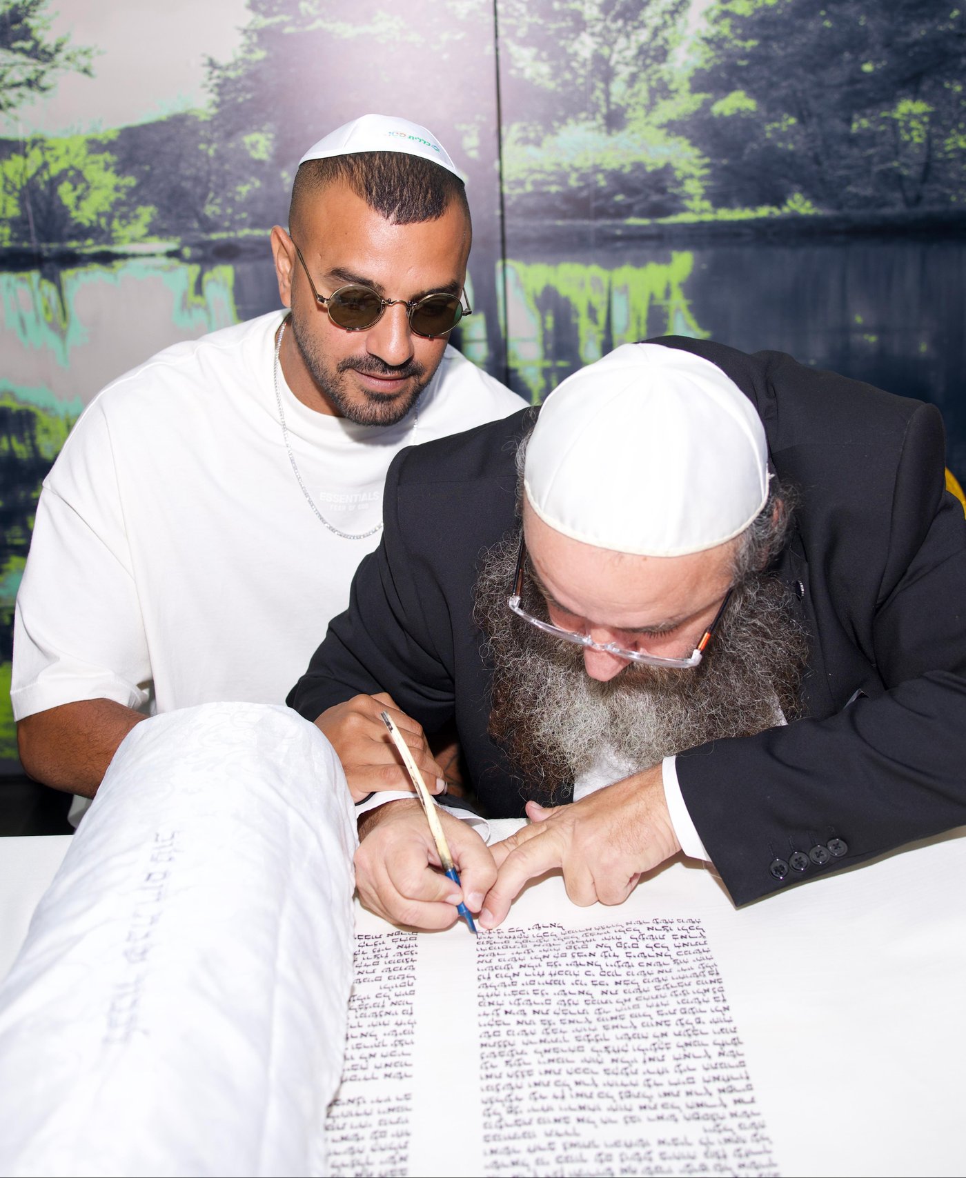 הזמרים דודו אהרון ואיתי לוי יחד עם קבוצת אנשי עסקים, תרמו ספר תורה לשלומם וחזרתם של החטופים שבשבי חמאס והצלחת חיילי צה"ל במלחמה ולזכותו של הרבי מחב"ד.