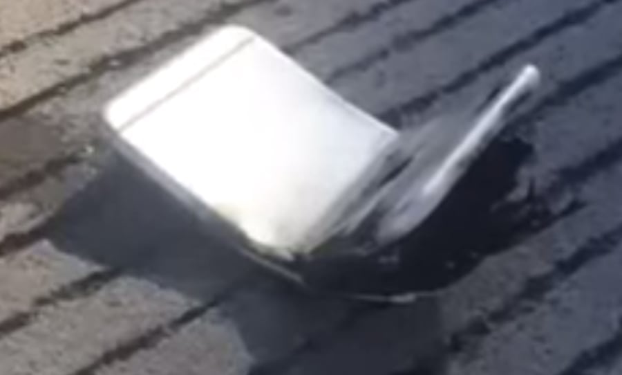 לטענתו, לאחר שזרק את האייפון מכיסו אל הכביש, עוברי אורח שפכו עליו קרח ומים, וצילמו את האירוע. בסרטון שצילם ניתן לראות את האייפון רוחש כאשר נשפך עליו קרח.