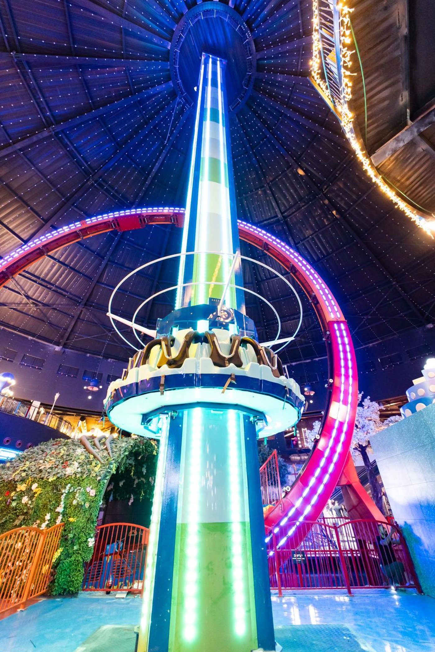 Sky Tower: מתקן גובה בו כל המושבים נמצאים סביב ציר מרכזי, עליו הם מטפסים לגובה וצונחים מטה במהירויות שונות.