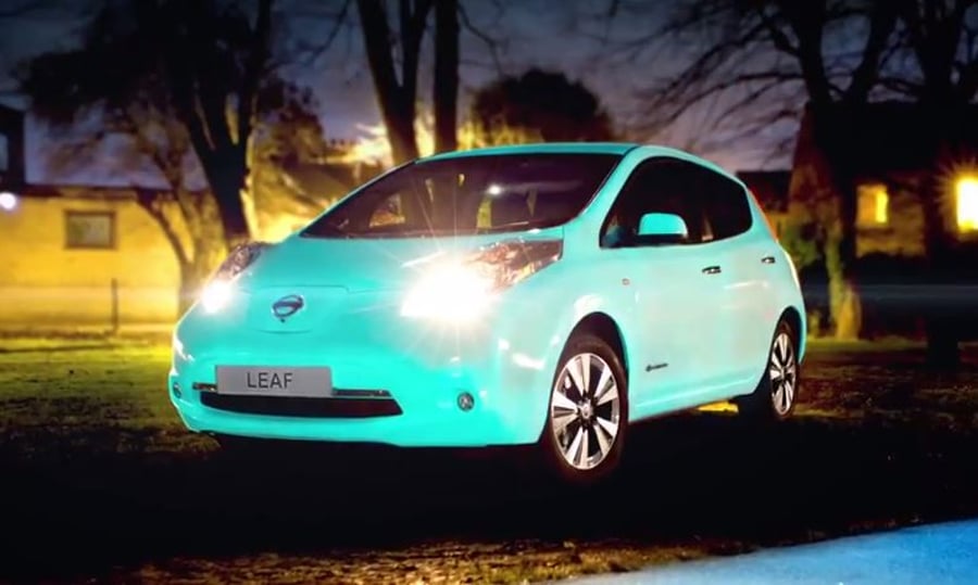 זוהר בחושך: יצרנית הרכב היפנית 'ניסאן' שחררה סרטון חדש לערוץ היוטיוב הרשמי שלה, ובו היא מציגה את הרכב החשמלי של החברה - Nissan LEAF כשהוא נצבע בצבע ירקרק ייחודי הגורם לו לזהור בחשכה.