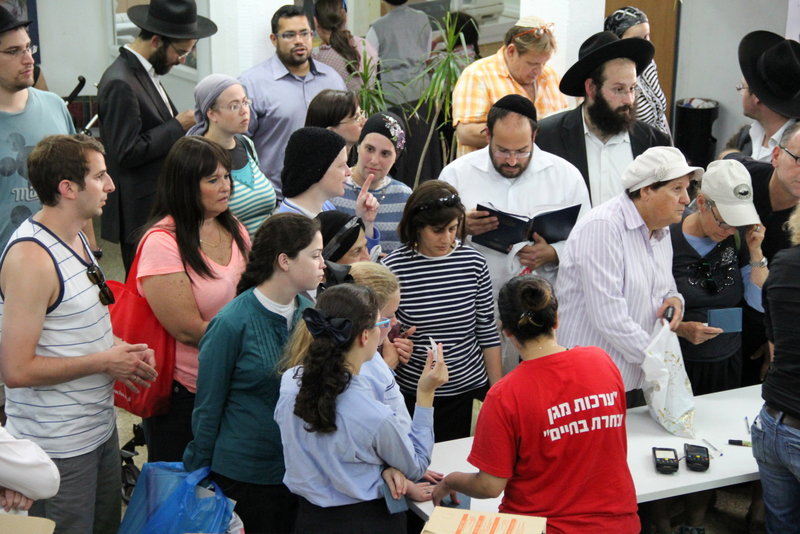 כוננות מלחמה: המונים בחלוקת ערכות מגן (צילום: יענקי אריה)