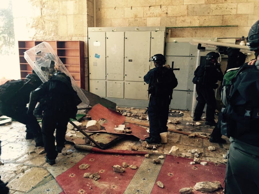 כוחות משטרה ומג"ב נכנסו לשטח ההר כשמקביל המתפרעים הערבים נמלטו לתוך המסגד ויידו אבנים ובלוקים לעבר השוטרים.