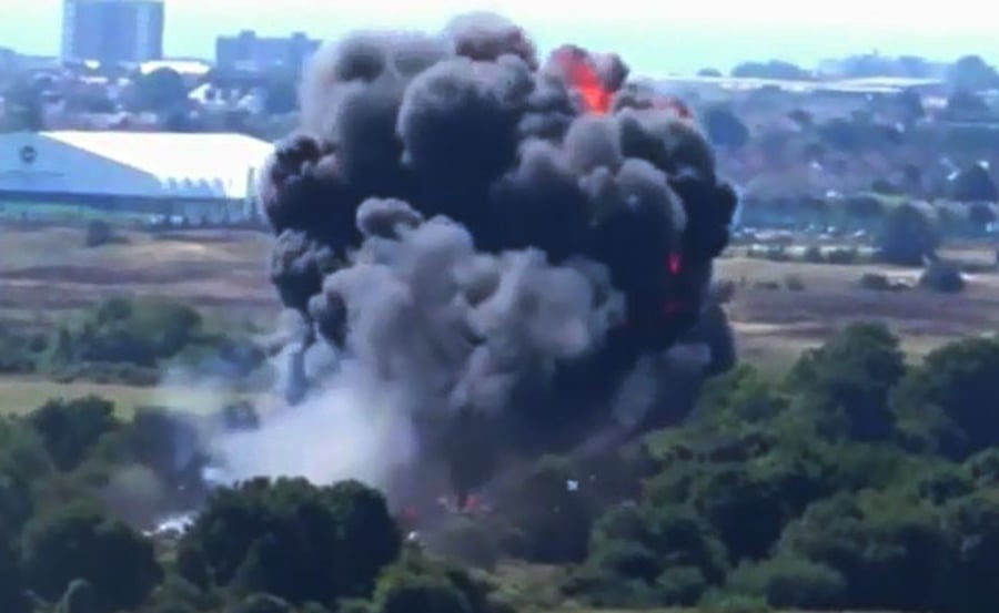 שבעה בני אדם נהרגו בשעות הצהריים (שבת) בהתרסקות מטוס קרב מסוג "הוקר האנטר" תוך כדי מפגן אווירי בדרום בריטניה. נוסף לשבעה שנהרגו, אדם אחד נפצע אנוש ומצבם של 14 בני אדם נוספים מוגדר קל. הטייס עצמו חולץ מהמטוס הבוער לאחר ההתרסקות ופונה לבית חולים.