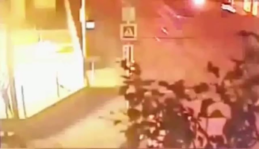 מצלמות האבטחה של הבניין קלטו את אחד החשודים מתקרב לגדר הבניין, מדליק את בקבוק התבערה ומשליך אותו. בסרטון נראה הבקבוק מתלקח על קיר הבניין.