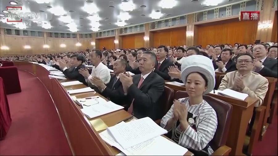 יותר מ-2000 צירים התאספו ב"אולם הגדול של העם" בבייג'ינג כדי לשמוע את חזונו של הנשיא שי - "מחשבתו של שי ג'ינפינג בנושא הסוציאליזם בעל המאפיינים הסיניים בעידן החדש" - ולהפוך אותו לחלק מהחוקה.