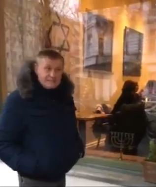 בהמשך הסרטון נראה הגרמני כשהוא מצביע על חנוכיה שעמדה בחלון הראווה של החנות, ואמר: "הדבר הזה לא שייך לפה, למערכת שלנו".