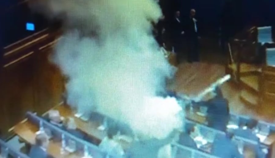 סערה במדינת קוסובו שבבלקן, לאחר שחברי האופוזיציה השתמשו בגז מדמיע כדי לדחות הצבעה בפרלמנט, אליה הם התנגדו.
