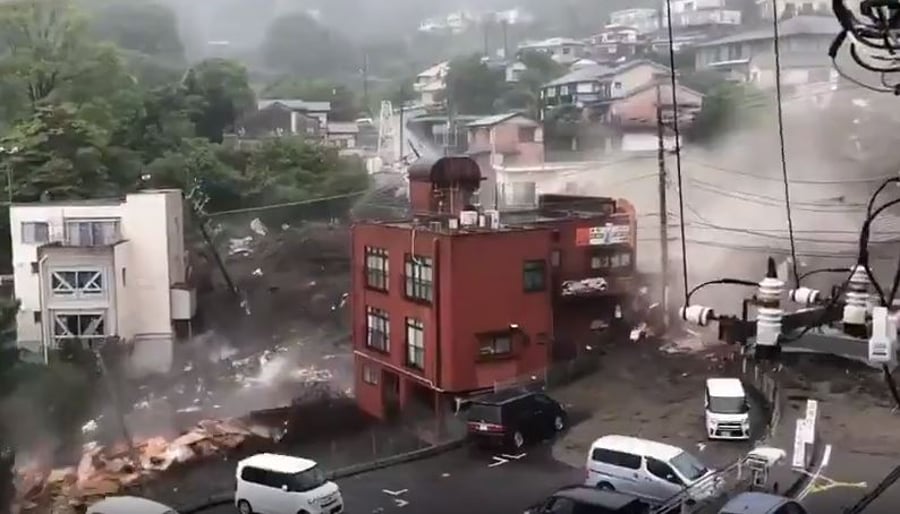 האירוע הדרמטי מתרחש בעיר היפנית אטאמי, השוכנת באי הונשו. מפולת בוץ, שנוצרה מגשמים עזים שהיכו באזור בימים האחרונים, סוחפת בדרכה בתים, מכוניות ורכוש רב.