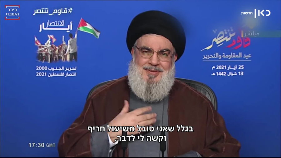 כמובן שלסיום לא שכחנו את הנאום של מזכ"ל ארגון הטרור חסן נסראללה, נאום שנשא במהלך השנה האחרונה בו לא הצליח לעצור את השיעולים - מה שהעלה סימני שאלה בנוגע לבריאותו.