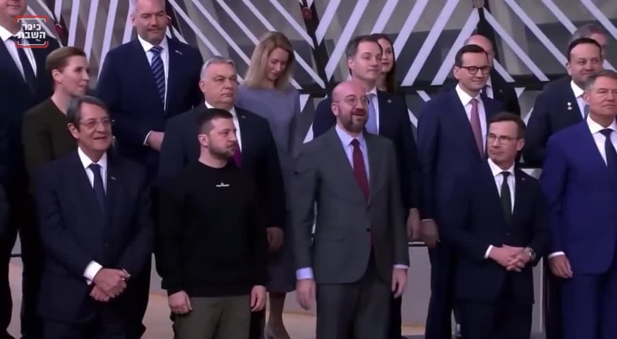 בהמשך, בשלב תמונה המשותפת, הגיע הנשיא זלנסקי כשכלל הנוכחים מחאו כפיים - למעט ראש ממשלת הונגריה שעמד כשהוא נראה מתוח.