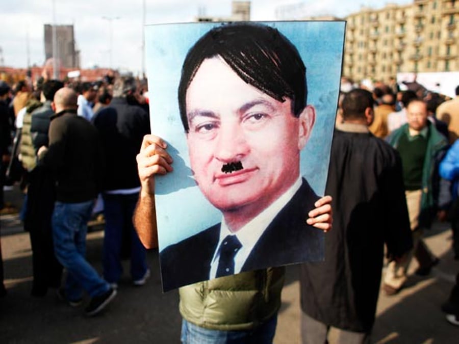 כמה מהם אף ציירו על פניהם צלבי קרס ושלטים עם כיתוב באנגלית: "אנחנו שונאים את מובארק ושונאים את ישראל".