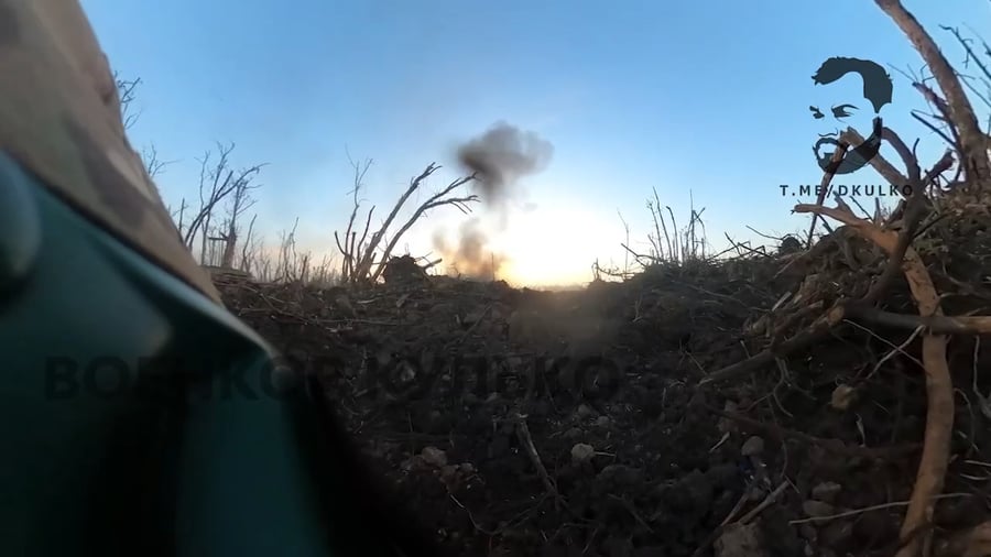 מבין החפירות, השליך החייל הרוסי רימון יד - אך לרוע מזלו, הוא פגע בעץ סמוך ועץ חזרה לכיוונו. בתיעוד ממצלמת הקסדה של החייל, ניתן לראות כיצד התעשת ברגע האחרון, והציל את חייו (בעולם)