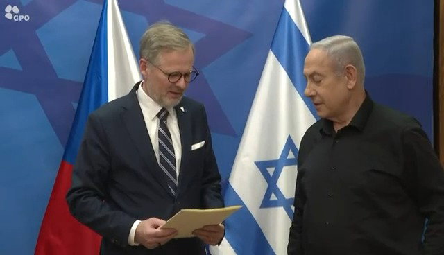 ראש ממשלת צ׳כיה פיאלה: ״תודה לך ראש הממשלה. הגעתי לפה בזמן הקשה הזה כדי להביע את תמיכתנו הברורה והסולידריות עם ישראל. היו לנו תוכניות להיפגש בפראג ב-8 באוקטובר, אבל יום אחד לפני כן, חמאס וארגוני טרור פלסטינים פתחו בטרור הברברי שלהם. ה-7 באוקטובר היה היום הטראגי ביותר עבור ישראל והעם היהודי מזה עשורים. אזרח צ'כי אחד היה בין הקורבנות של מעשה הטרור הזה".
