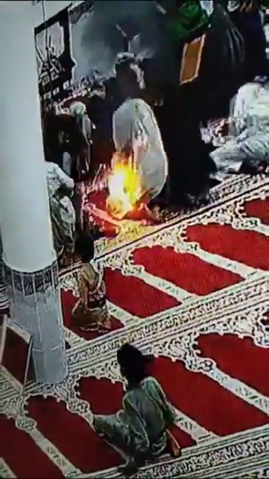 בתיעוד נראה מתפלל בתוך מסגד בעיר מא'ר, מתחיל לבעור לאחר שסוללת טלפון סלולרי התפוצצה לו בכיס.