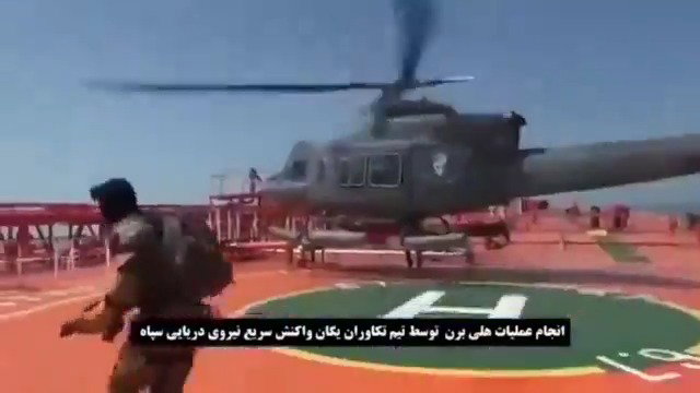 אחרי שהודיעה כי חייליה הם האחראים להשתלטות על מכלית נפט במפרץ עומאן, איראן מפרסמת היום (שישי) תיעוד דרמטי מההשתלטות: נחיתת המסוק על המכלית, ויציאת רעולי הפנים החמושים ממנה.