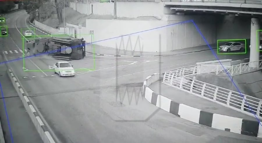 תיעוד ממצלמות האבטחה שהופץ ברוסיה, מראה נהג הנוסע בסוצ'י, מקום הנופש המועדף על נשיא רוסיה פוטין, ומוביל מערכת נ"מ מתקדמת - כאשר לפתע הוא מתהפך.