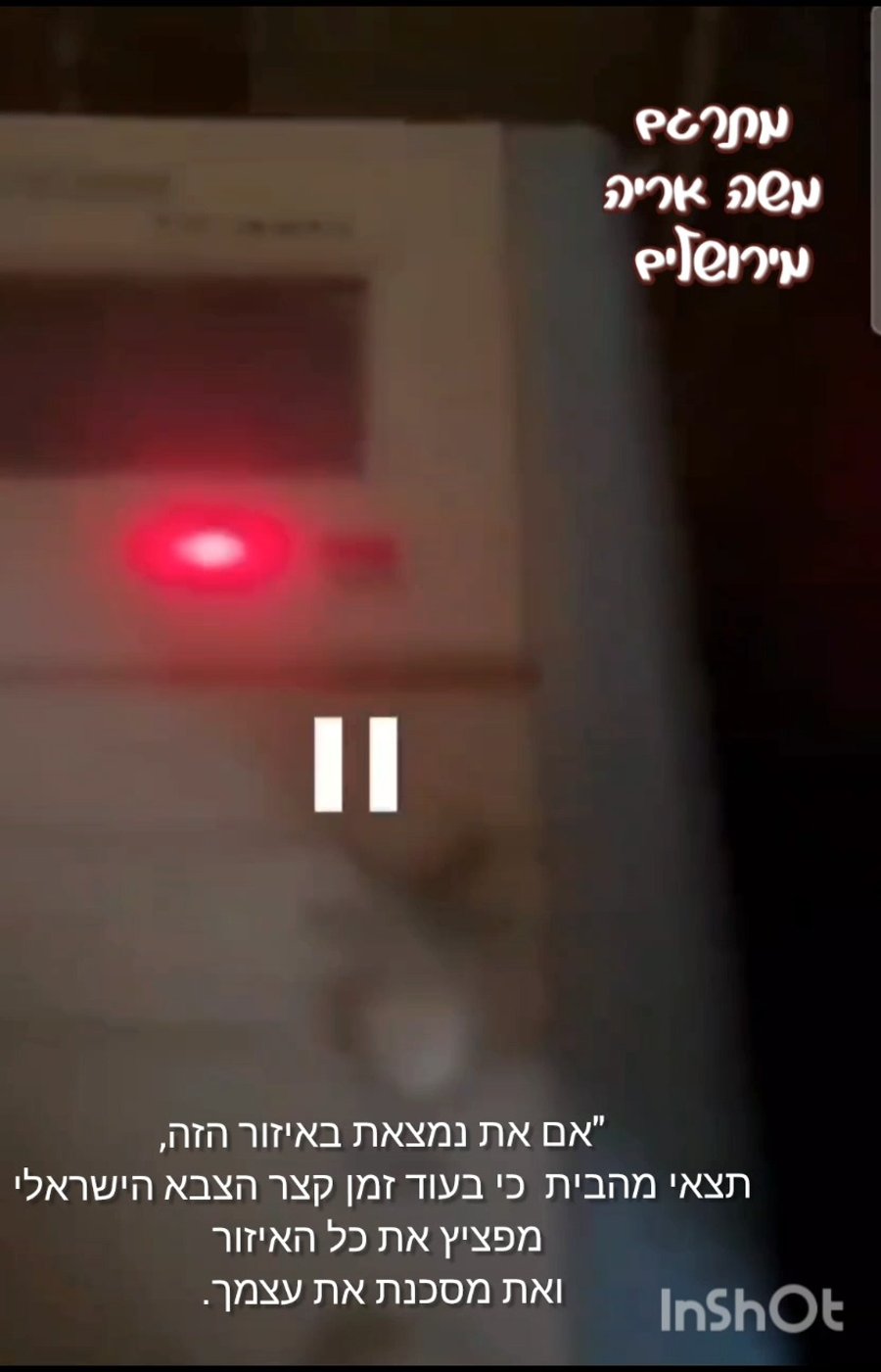 "אם את נמצאת באזור הזה תצאי מהבית כי בעוד זמן קצר הצבא הישראלי מפציץ את כל האזור ואת מסכנת את עצמך. תקחי את בעלך ואת הילדים ותצאי מהבית מהר".