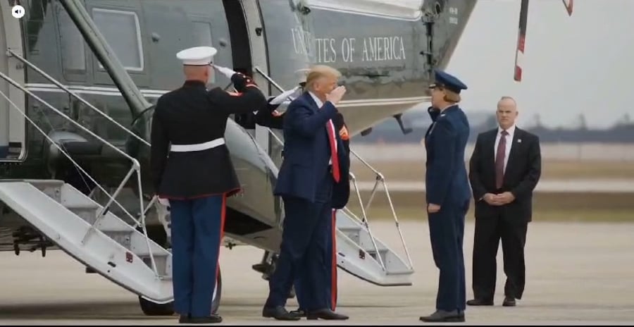 בסרטון נראה הנשיא טראמפ מצדיע לחיילי המארינס כמפקד העליון של צבא ארה"ב, חותם על צווים נשיאותיים ומסתכל במבט סמכותי על האופק.