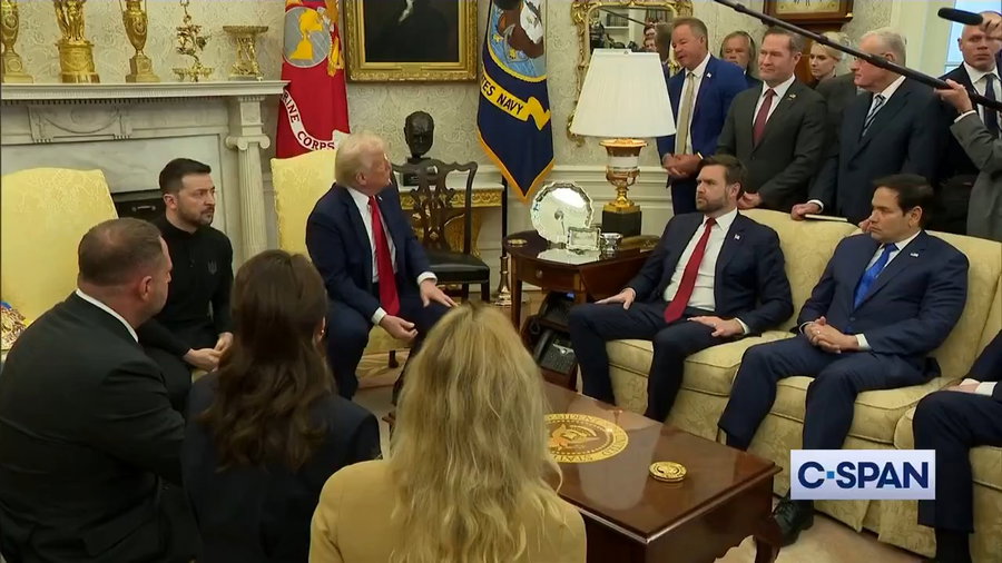 לפי ה-BBC השיחה בין טראמפ לזלנסקי התנהלה על מי מנוחות, עד שהחל כתב שמרן לשאול שאלות על בגדיו של נשיא אוקראינה. משם, הטונים עלו, זלנסקי נראה עצבני, וסגן הנשיא ניצל את המצב כדי להטיח באורחו שהוא לא מכבד את הבית הלבן.