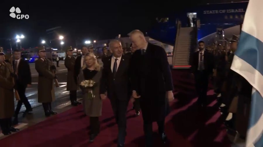 ראש הממשלה בנימין נתניהו נחת הלילה בהונגריה, והתקבל על ידי משמר כבוד של המדינה כיאה לראש מדינה במסגרת ביקור מדיני.