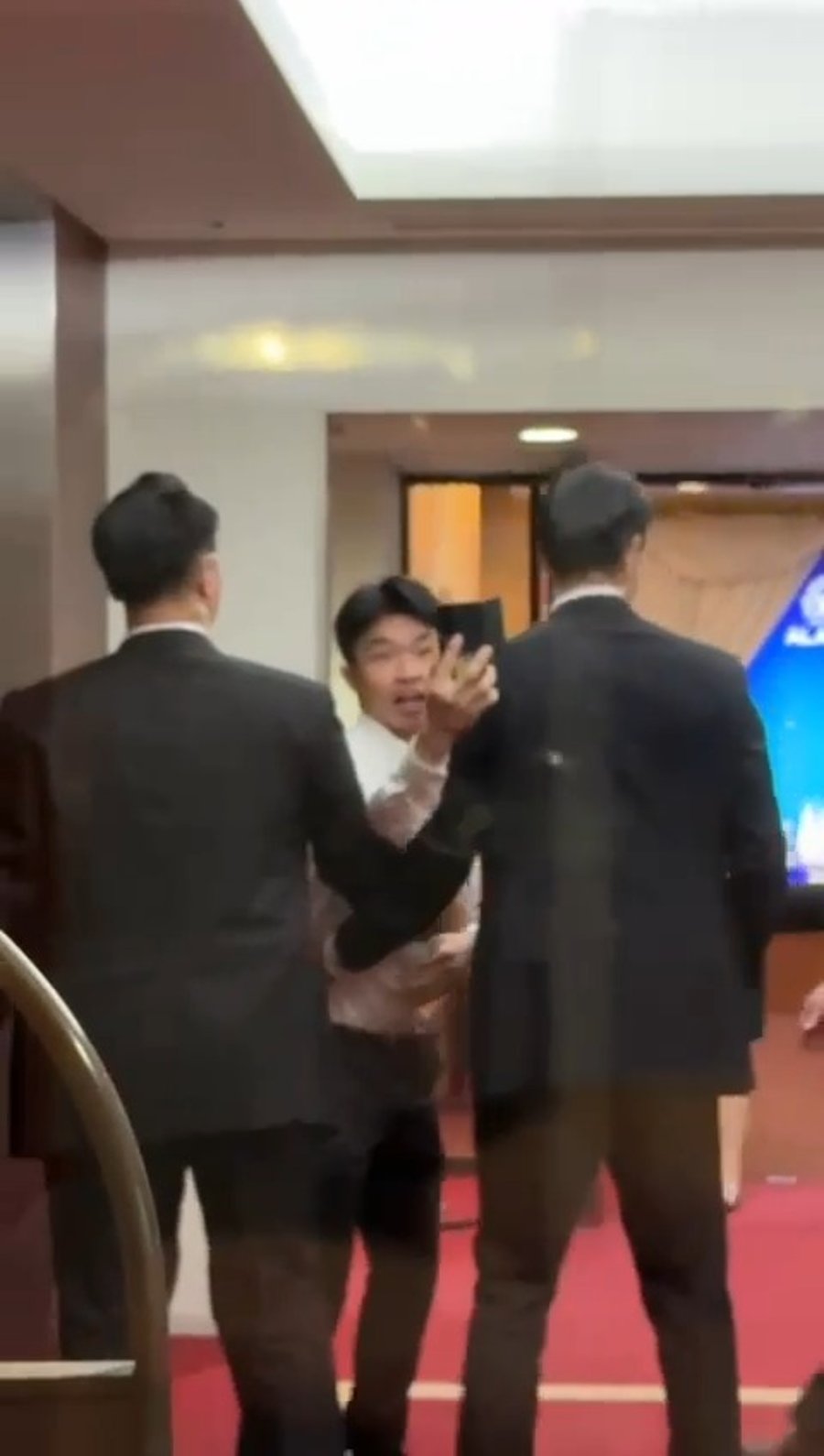 בסרטון שפרסם משרד החוץ נראה אחד המפגינים מנסה להתפרץ לאולם בו שהה השר תוך סיכון בטחונו.